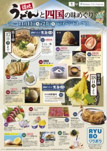 2025年11月11日(火)から11月24日(月)までの14日間、沖縄県のデパートリウボウ6階イベントスペースにて『うどんと四国の味めぐり』を開催いたしました。